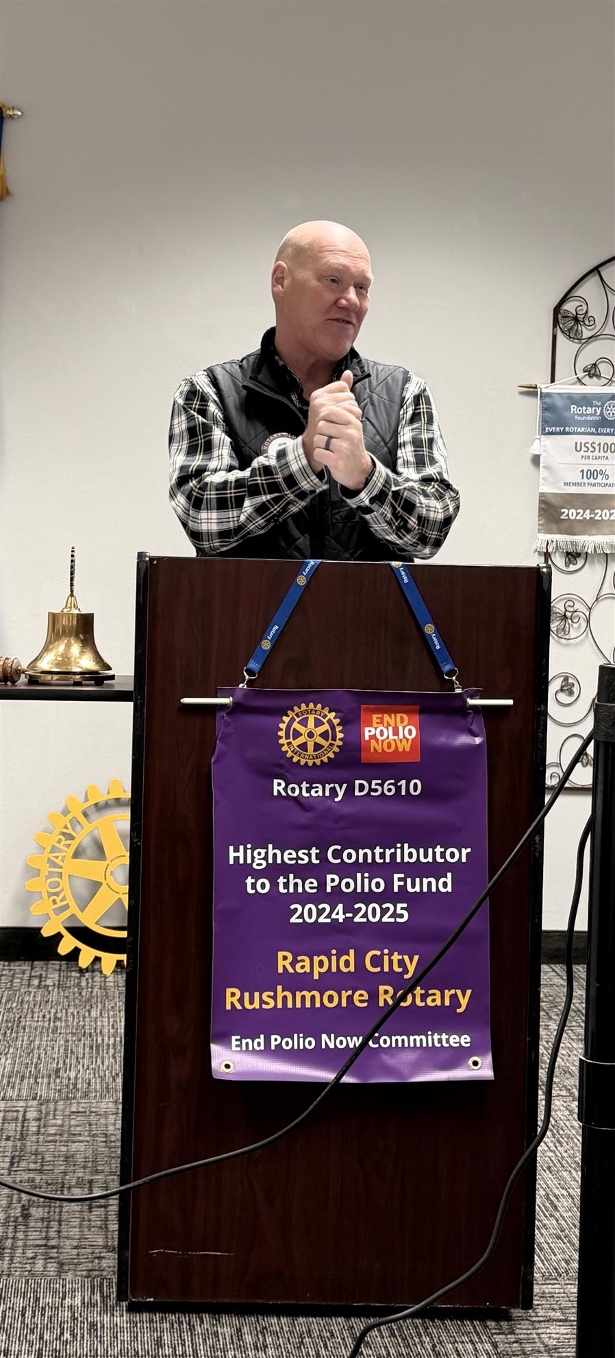 End Polio Now: Countdown to History Campaign Certificate of Appreciation: Rushmore Rotary will receive a certification of appreciation for contributing at least US $1,500 to Rotary's polio eradication efforts. Isn't that a tremendous use of our Happy Dollars collection.