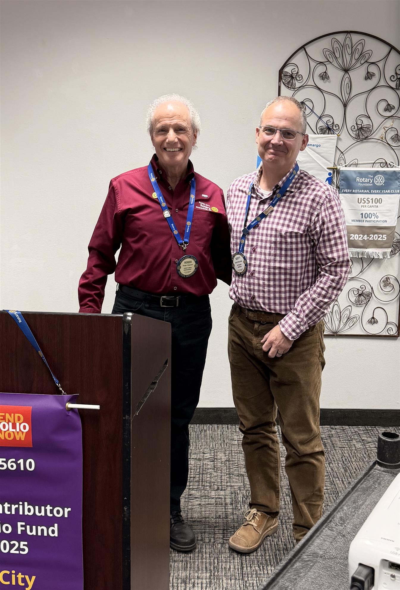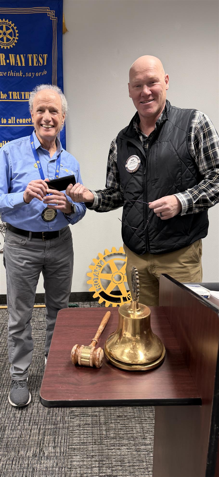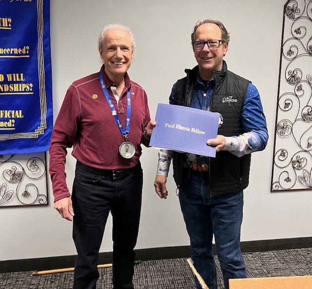 Congratulations to Rotarians Jeff Meyer and Jeff Kingsbury for earning their Paul Harris fellow +6 and +8. For every $1000 donated to the Rotary Foundation you receive a Paul Harris Foundation award. Thank you for your generosity.