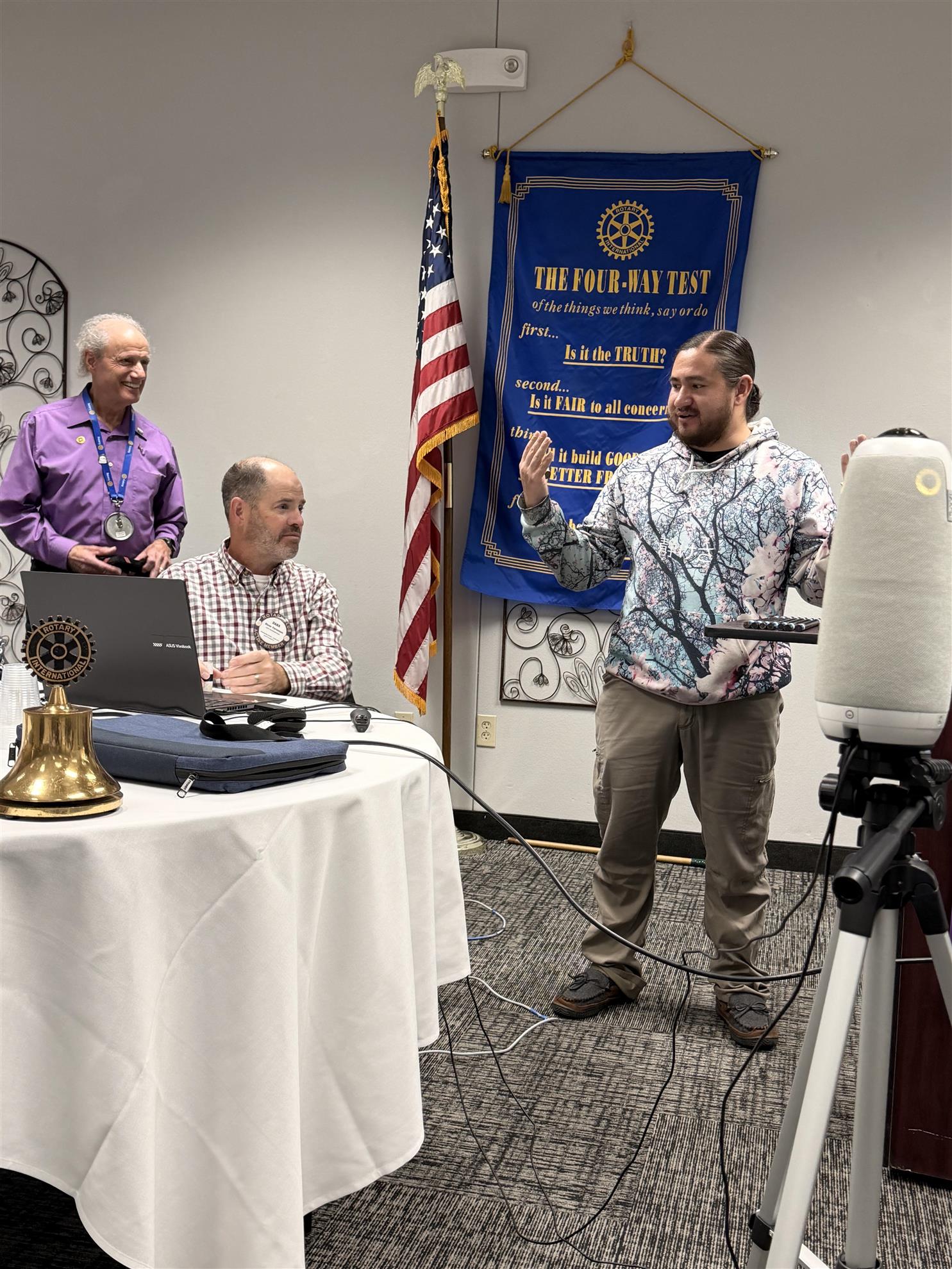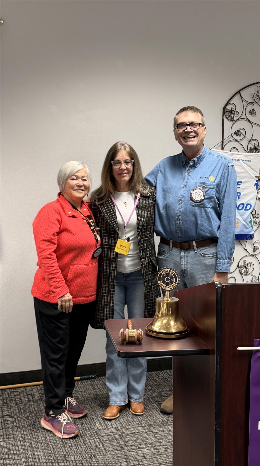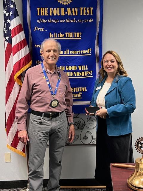 We also welcomed our newest member, Mary Swanson. Membership chair Jeff Kingbury and her club sponsor Julie Jackson gave her a Rotary pin, 4-way test plaque, and her temporary name tag. Welcome!