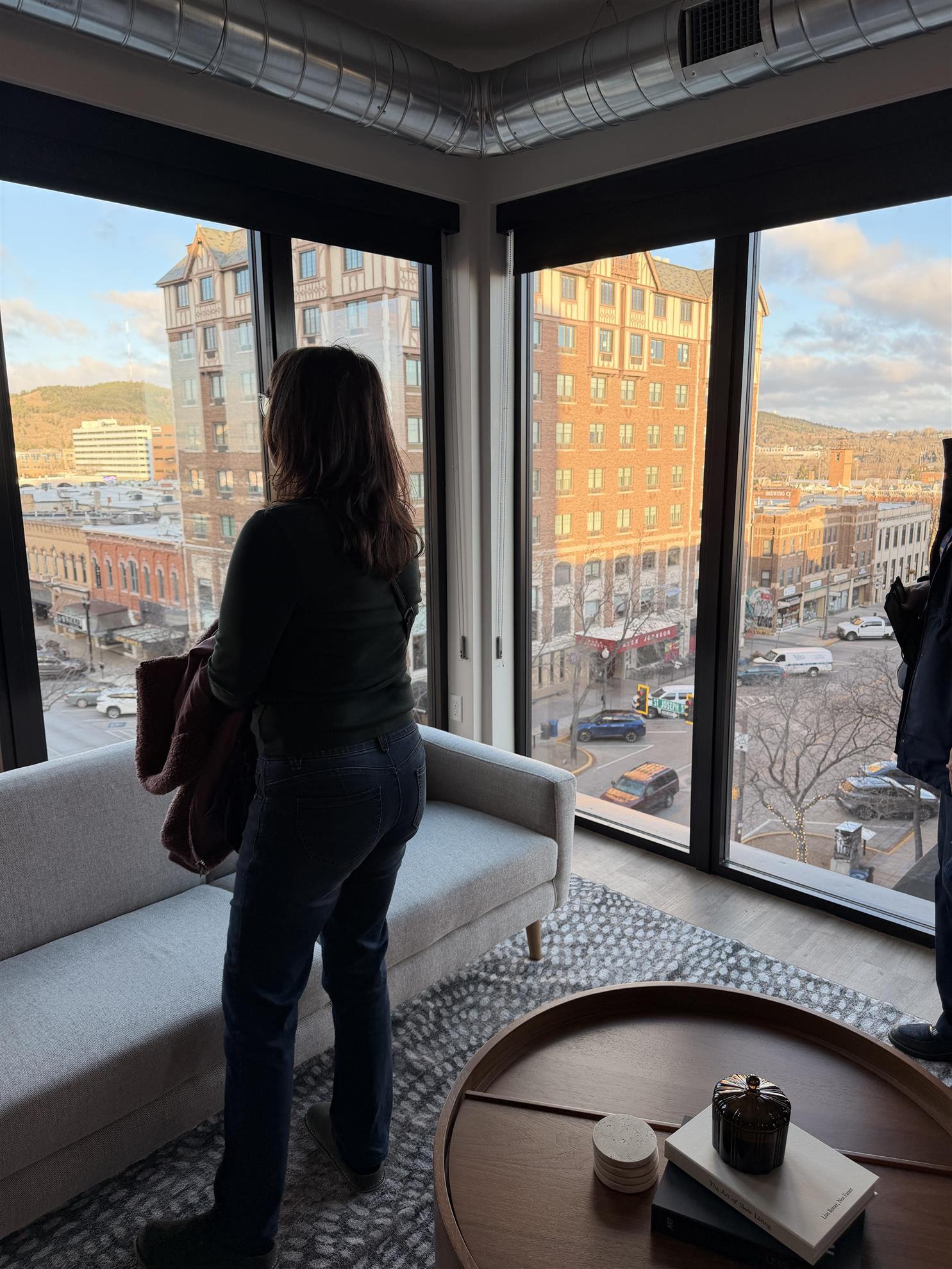 Our meeting today was hosted by Block Five, Rapid City’s new downtown luxury apartments connected to the Hyatt Hotel and retail spaces. Floors 1-4 are the Hyatt and 5-10 residents apartments. Included with the apartments is a private, secure entrance, residence only elevators, gym, community gathering room, free Starbucks coffee in the lobby, and parking garage access. They are pet friendly and have a pet area outside. The apartments are available in studios, and 1 & 2 bedrooms.