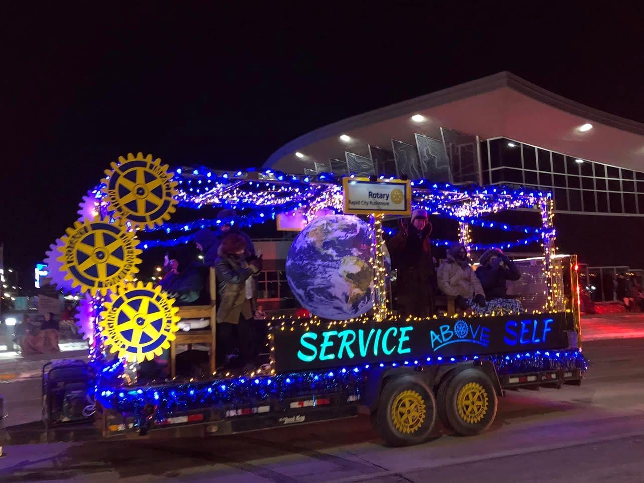 What a wonderful night. Our float was first as the Grand Marshall! The Rapid City Festival of Lights Parade was spectacular. Thank you to our hard working Rotarians for making this spectacular float.
