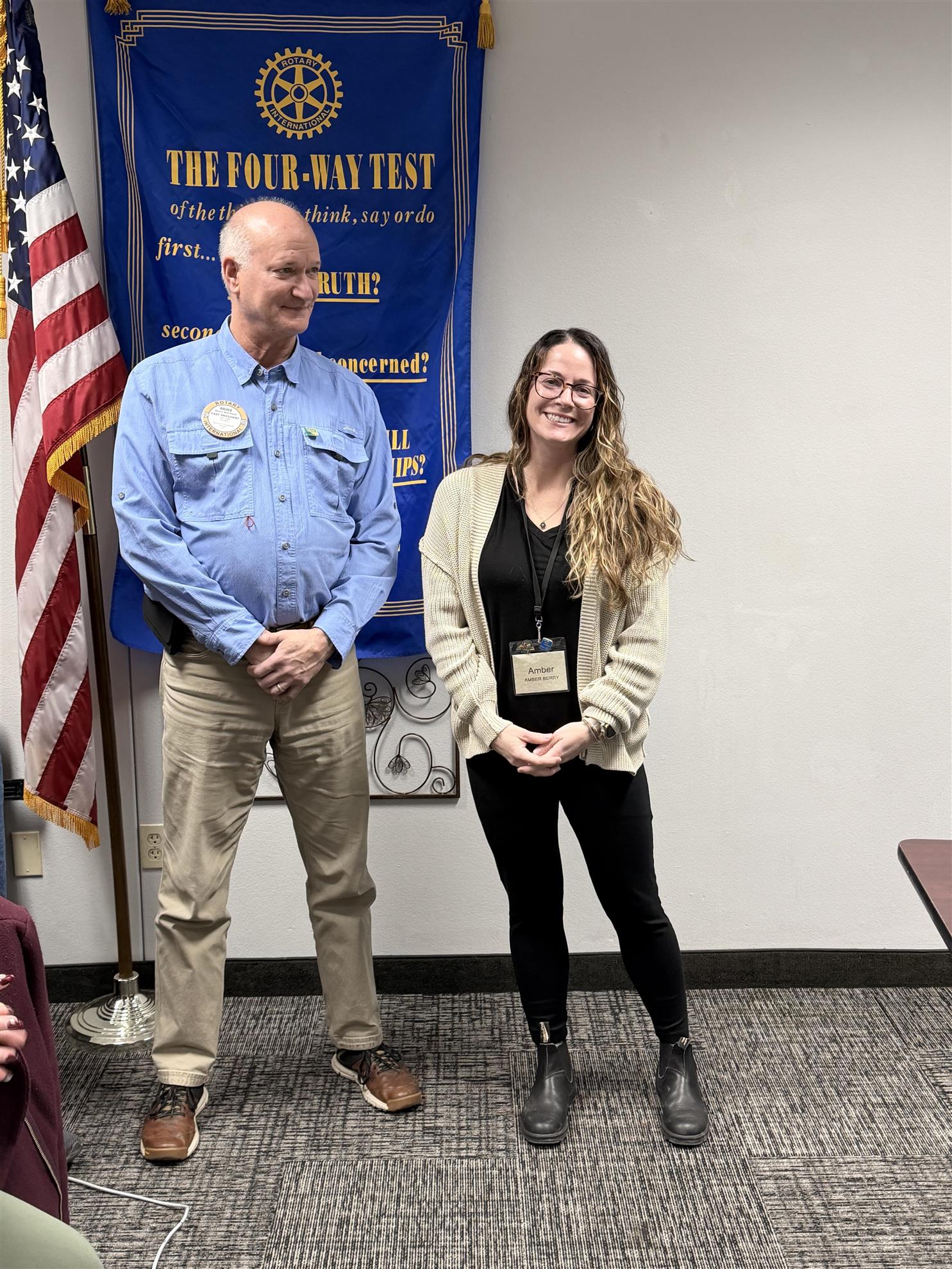 We welcomed our newest member, Amber Berry. She received her Rotary pin, and temporary name badge.