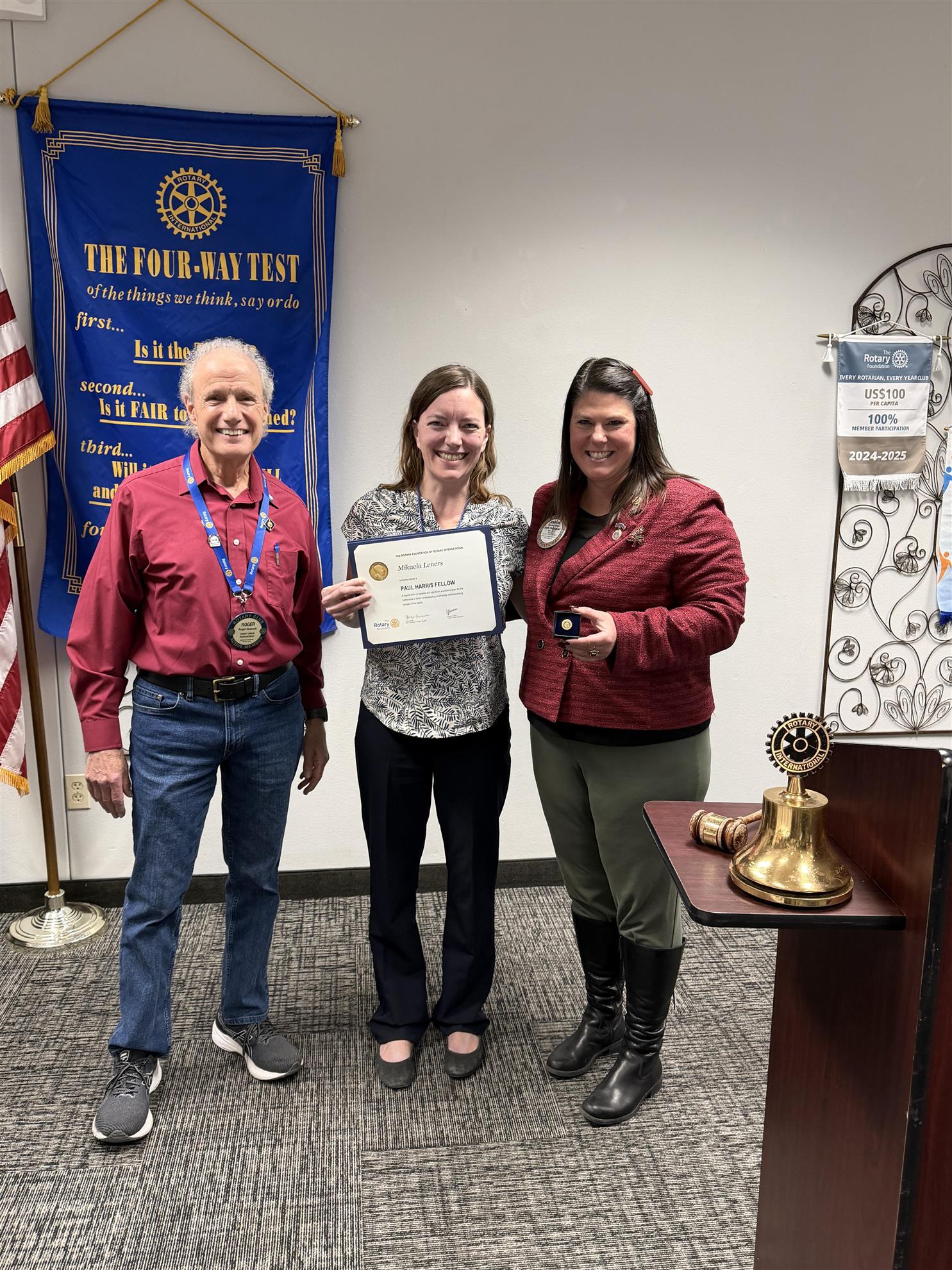 A Paul Harris Fellow was gifted to Mikaela Leners of the Impact Club by Jennifer Rollins for her tireless work on training programs at Pine Ridge for human trafficking. Congratulations!