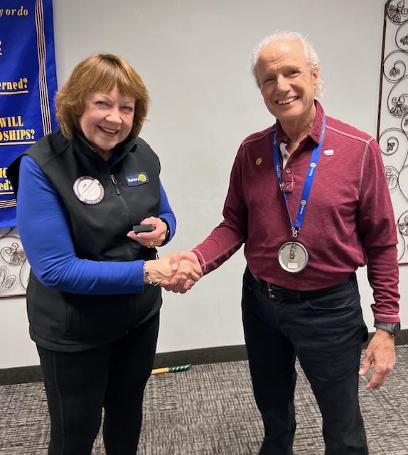 Norm Peterson, Club Foundation Chair, encouraged members to contribute to the Foundation in November, and he walks his talk! Both Norm and Linda gained the next level on Paul Harris recognition. Linda decided to join Norm in the Paul Harris Society, agreeing to contribute $1000 per year ongoing.