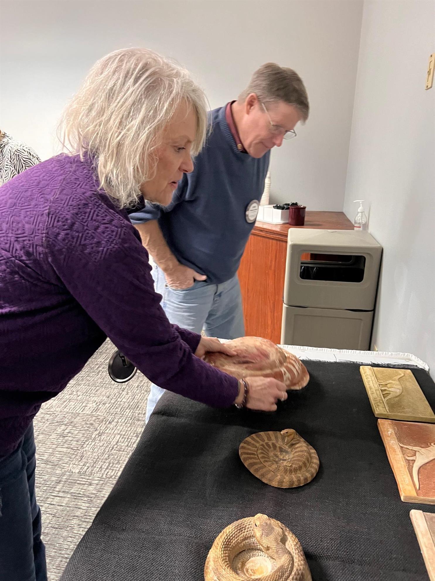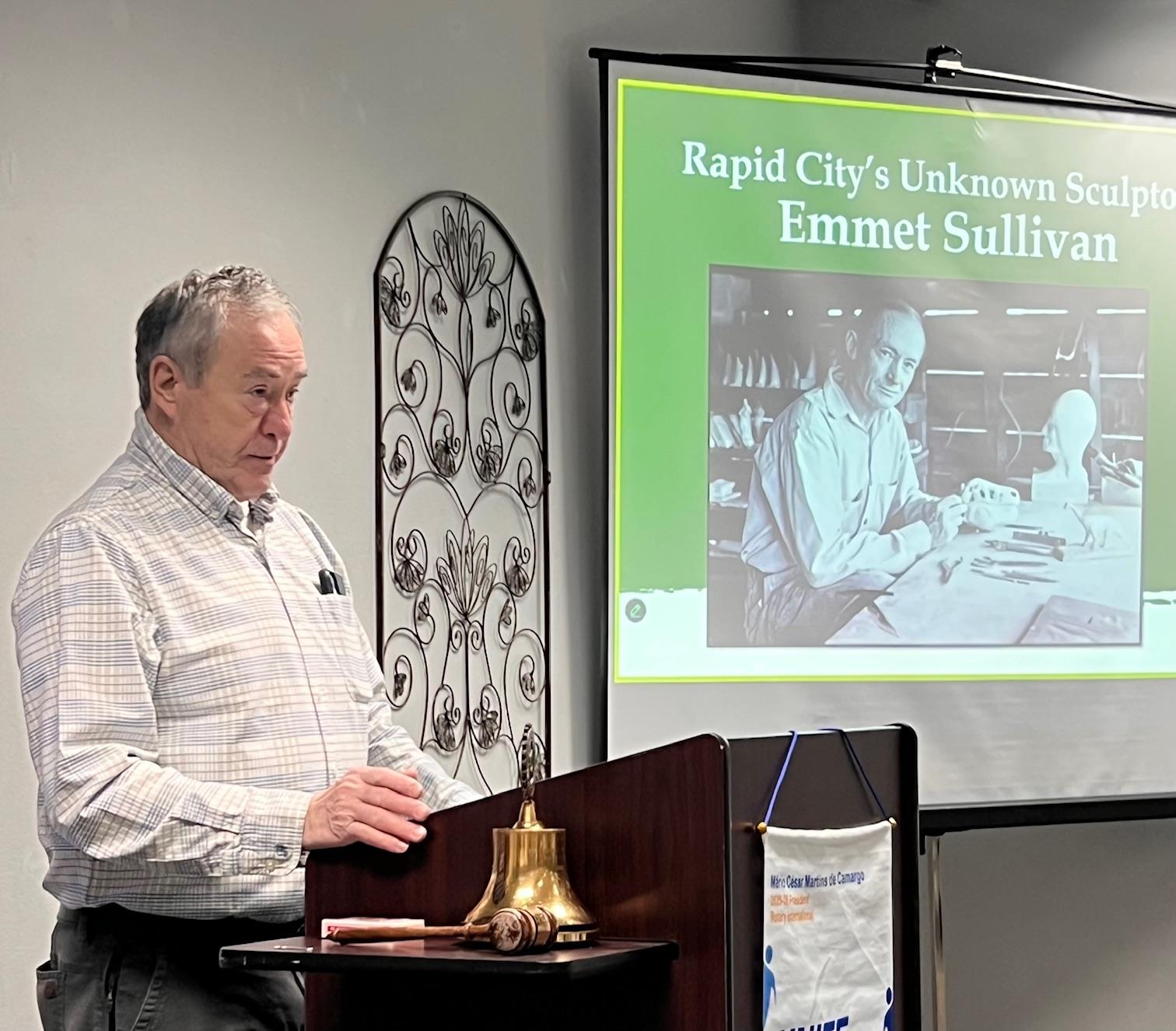 Rushmore Rotarian Pat Roseland presented at today's meeting, sharing his research on artist Emmet Sullivan, the creator of Dinosaur Park in Rapid City.